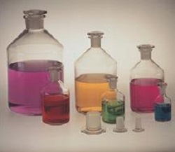 BOTELLA TRANSPARENTE, BOCA ESTRECHA ESMERILADA CON TAPON, 250 ml |